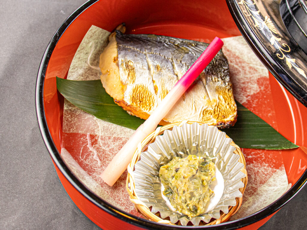 【焼物】春の魚「鰆の幽庵焼き」を蕗味噌でお召し上がりください。旬の食材は和の味付が良く合います。
