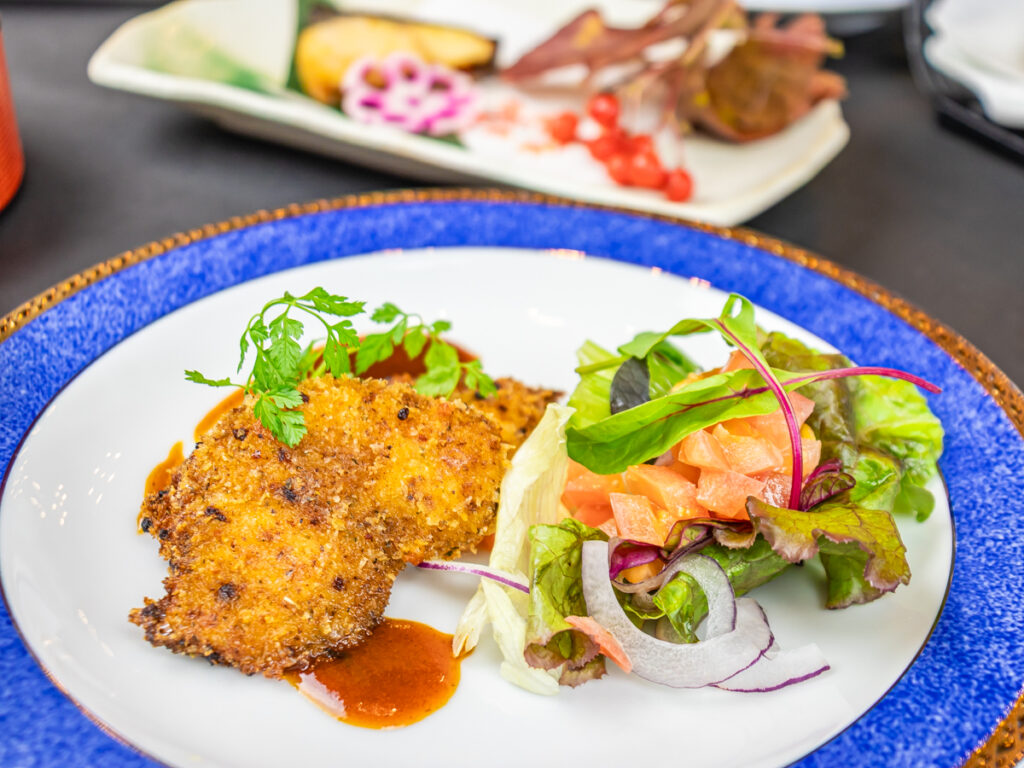 【洋皿】群馬県の豊かな自然環境のもとで育てられたブランド鶏「赤城地鶏」を洋風にカツレツでご賞味いただけます。
